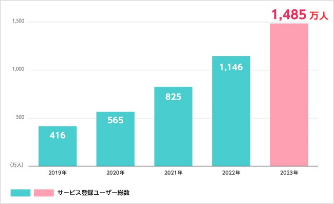 同じくサービス登録ユーザー数も、前年比130%となる1400万人を突破し、過去最高を更新しております。