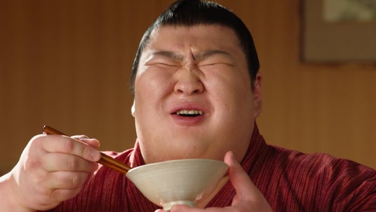 稽古が終わった熱海富士関。そこに熱海富士関の大好きな「お茶づけ海苔」が登場。あふれんばかりの笑顔でおいしく食べているところに伊勢ヶ濱親方が現れる…という内容です。