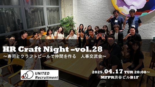 ユナイテッド株式会社(本社:東京都渋谷区、代表取締役社長 兼 執行役員:早川 与規、証券コード:2497)の連結子会社であるユナイテッド・リクルートメント株式会社(本社:東京都渋谷区、代表取締役:金子 陽三、以下「ユナイテッド・リクルートメント」)は、前身のONX株式会社も含めてこれまで20回以上にわたって、企業人事交流会を開催してまいりました。今回は28回目として、「HR Craft Night vol.28」を開催いたします。