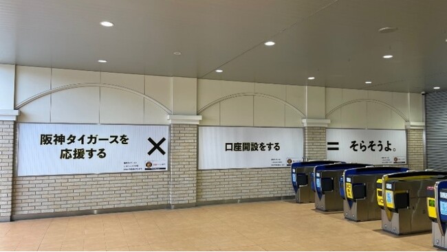 今回は、「ただいま駅構内は、猛虎魂でたいへん混み合っております。」「スマホでお金をおろせます。六甲おろしでも歌いながら」など、阪神甲子園球場に足を運ぶ阪神タイガースファンの皆さまに楽しんでいただける内容となっています。電車を降りた瞬間から改札を出るまで、各所でお楽しみください。