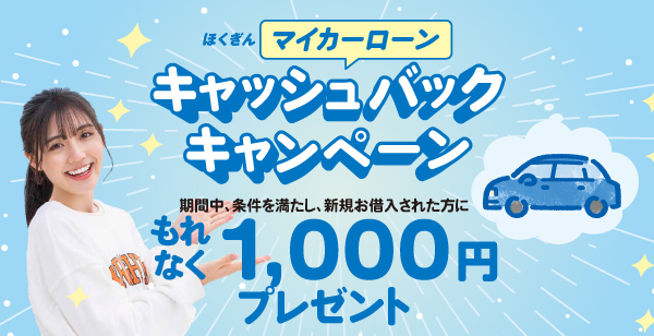 北陸銀行(頭取 中澤 宏)は、2023年3月1日(水)より「ほくぎんマイカーローン」、「ほくぎんフリーローン」の2商品において、キャッシュバックキャンペーンを実施いたします。キャンペーン期間中に対象条件を満たされたお客さまへ、もれなく現金1,000円をプレゼントいたします。