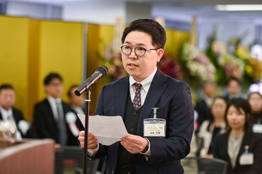 同時に、私が勤務している会社は、旧来のビジネスから事業ポートフォリオを入れ替えていくという大きな転換期にあります。ここで得た『コミュニケーション』についての学びを組織に持ち帰り、企業変革の一翼を担う人材として貢献することが、ここに送り出してくれた上司や同僚、周囲の皆さんの期待に応えることであると改めて責任を感じるところです。本日、ここに集う同期の皆さんも、それぞれのキャリアを経て、様々な思いと希望を胸に本日を迎えていると思います。これからの2年間をともに学び、助け合いながら、仕事を離れた仲間として、様々な経験を分かち合っていきたいと思います。」