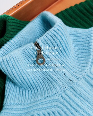 ランド オブ トゥモロー 心斎橋パルコ店にて6月8日(木)から6月18日(日)の期間、Corgiのドライバーズニットとクルーネック2種類をベースにオーダーを承ります。