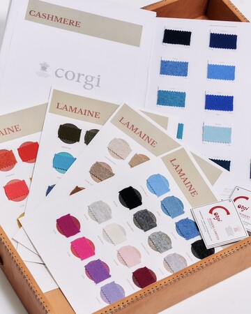素材はジーロンウールとカシミヤを豊富なバリエーションの中よりお選びいただき、お好みの素材・お色でオーダーを承ります。