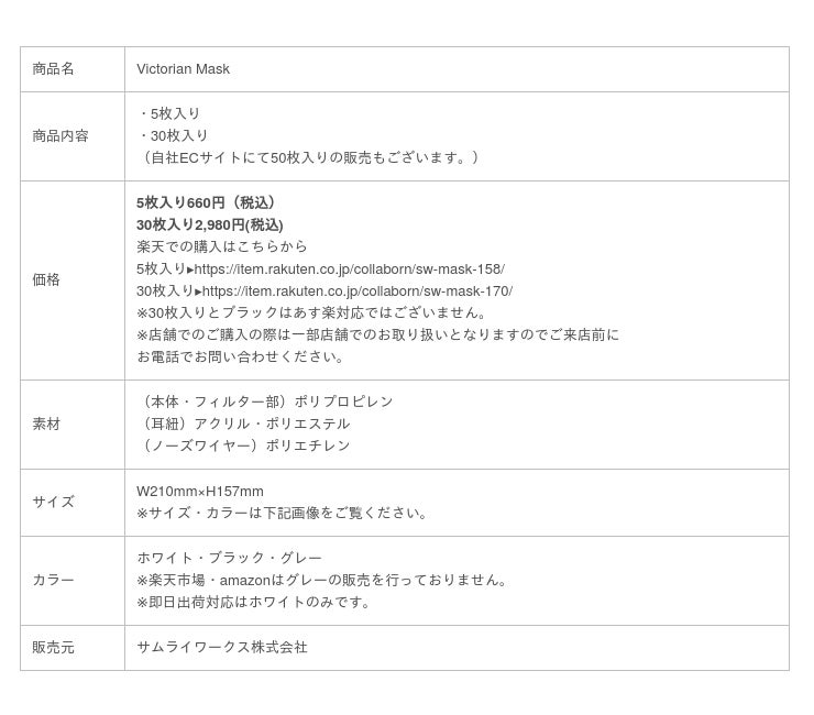 <Collaborn 楽天市場店>https://item.rakuten.co.jp/collaborn/sw-mask-158/