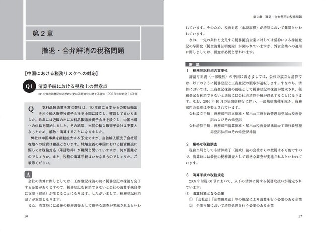 中国子会社を円滑に運営するために、法制度と中国特有の商慣習をふまえ、中国に進出している日本企業が直面している税務・法務のリスクの回避・解決策について、リスクの場面ごとにQ&A形式で解説!