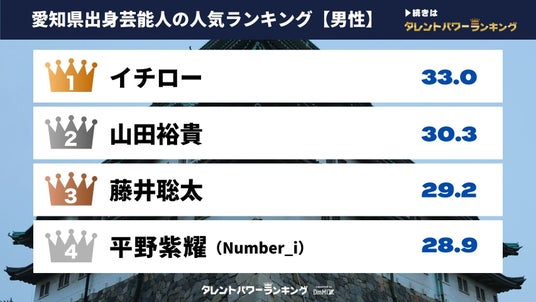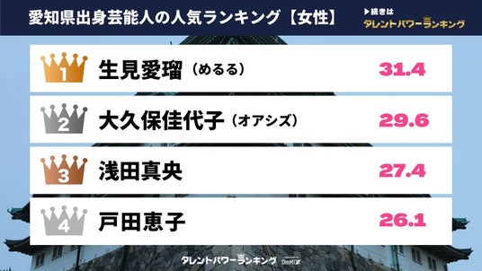 『タレントパワーランキング』では、タレントパワーランキングに登録されている愛知県出身タレントのパワースコアを調査。