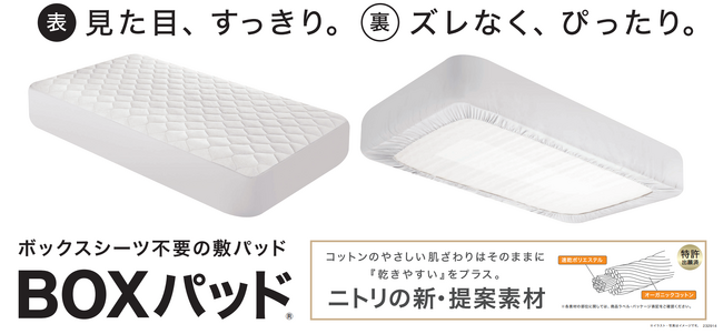 ニトリのBOXパッドシリーズは、オーガニックコットンの他、Nクールも展開しています。ぜひ店頭にてご覧ください。