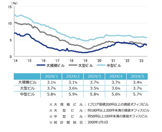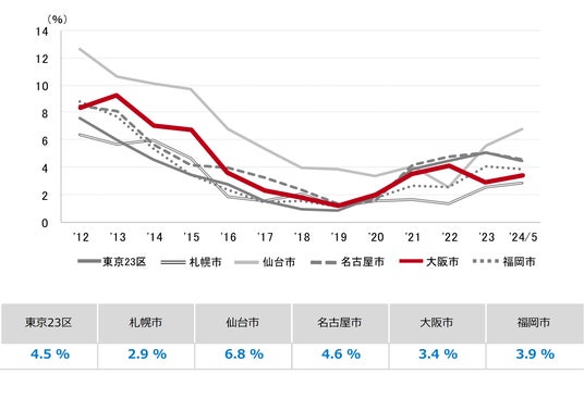 三幸エステート株式会社(本社:東京都中央区、取締役社長:武井重夫)は、2024年5月度の大阪市オフィス賃貸状況(空室率&現空面積:大規模、募集賃料&募集面積:大規模、規模別空室率、主要3区※1空室率:大規模)および全国6大都市(東京・札幌・仙台・名古屋・大阪・福岡)の大規模ビルのマーケットデータをまとめた「オフィスマーケット2024年6月号大阪」を公表します。