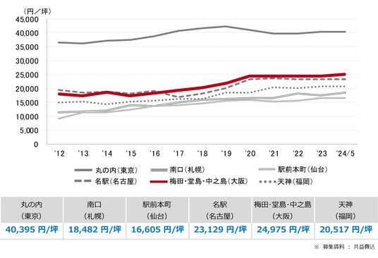 大阪市 大規模ビル 募集賃料&募集面積