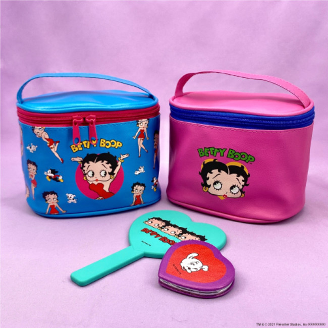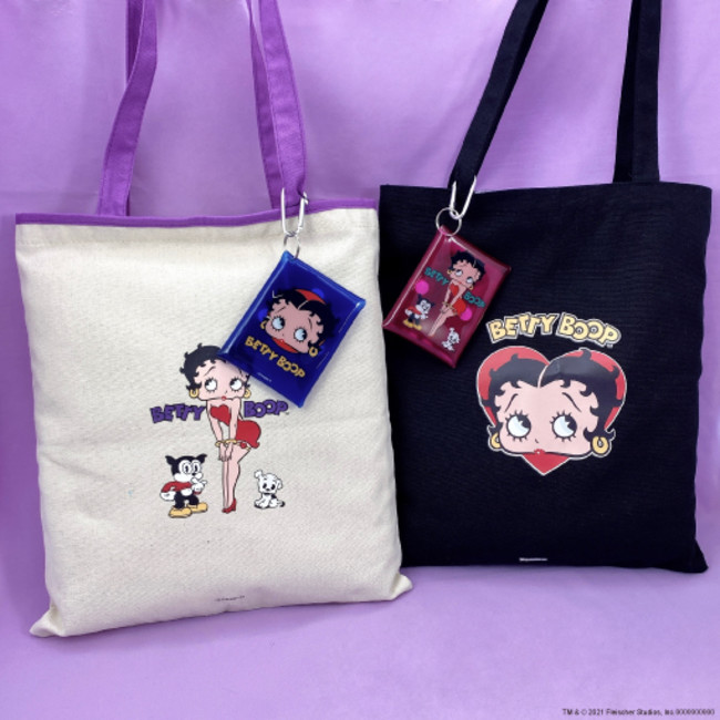 これまで「赤」や「黒」の印象が強かった『ベティー ブープ™』のグッズですが、今回はあえてビビットなブルーやパープルを基調としたアメリカンビンテージ風のデザインに仕上げました。どこか懐かしさも感じられるキュートなデザインの全25アイテムを展開します。