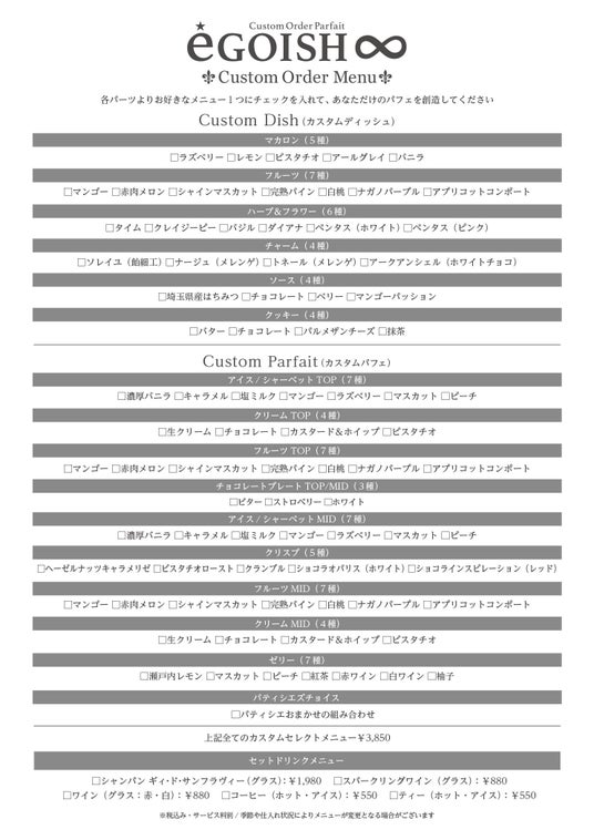 【カスタムオーダーパフェ専門店 eGOISH∞(エゴイッシュ インフィニティ)について】
