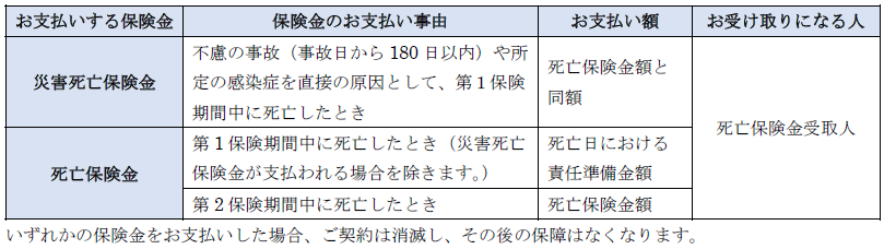 第2保険期間中は、不慮の事故または所定の感染症によるかにかかわらず、死亡保障を確保できます。
