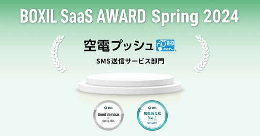 「空電プッシュ」は、「BOXIL SaaS」SMS送信サービス部門で投稿された口コミにおいて、各カテゴリで総得点の高いサービスとして『Good Service』を受賞しました。また、「口コミによるサービス評価」9項目を対象に、各カテゴリ・項目において一定の基準を満たした上で、最も高い平均点を獲得したサービスとして『機能満足度No.1』を受賞しました。