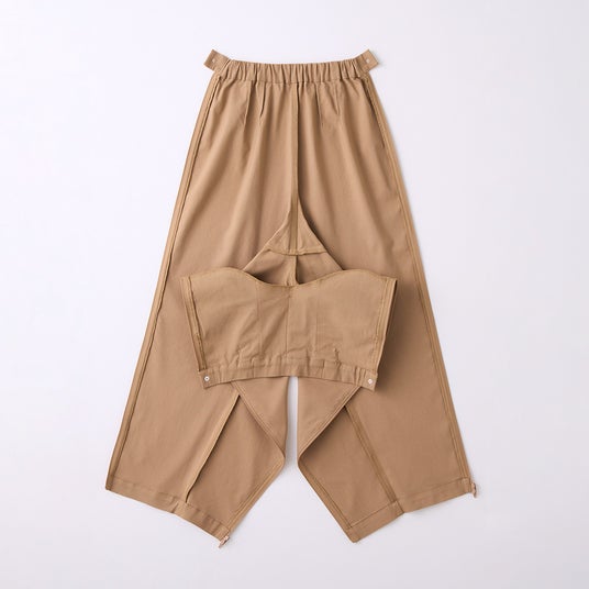 本シリーズは、障害や病気のある方の「着やすい」と「着たい」に寄り添い、当社で人気のトップスやボトムスをベースに開発されました。脇や裾がスナップボタンやファスナーで大きく開閉できる設計により、着脱のしやすさはもちろん、ケアをする方の負担も軽減する「新たな日常着」の提案です。