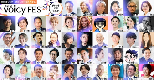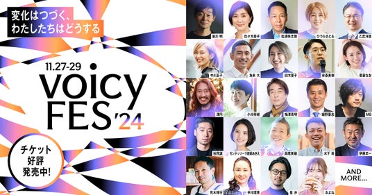 音声プラットフォームVoicyを運営する株式会社Voicyは、2024年11月27日(水)から29日(金)の3日にわたって声の祭典「Voicy FES ’24」を開催します、総勢48名のパーソナリティによる24の対談が繰り広げられます。