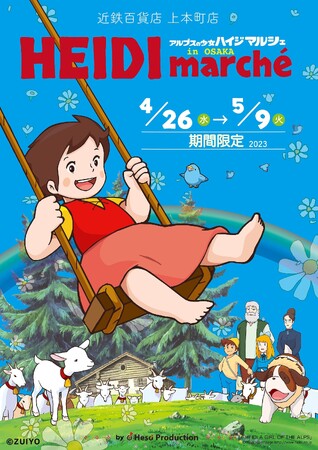 オリジナル商品の企画・制作・販売を軸に、企業・組織のトータルブランディングを手掛ける株式会社ヘソプロダクション(本社:大阪市福島区・代表取締役:稲本ミノル)は、テレビ放送やCMなどでも話題の名作アニメ『アルプスの少女ハイジ』のポップアップストア「アルプスの少女ハイジマルシェ in Osaka」を、2023年4月26日(水)から5月9日(火)までの期間、近鉄百貨店上本町店8階にて期間限定開催いたします。
