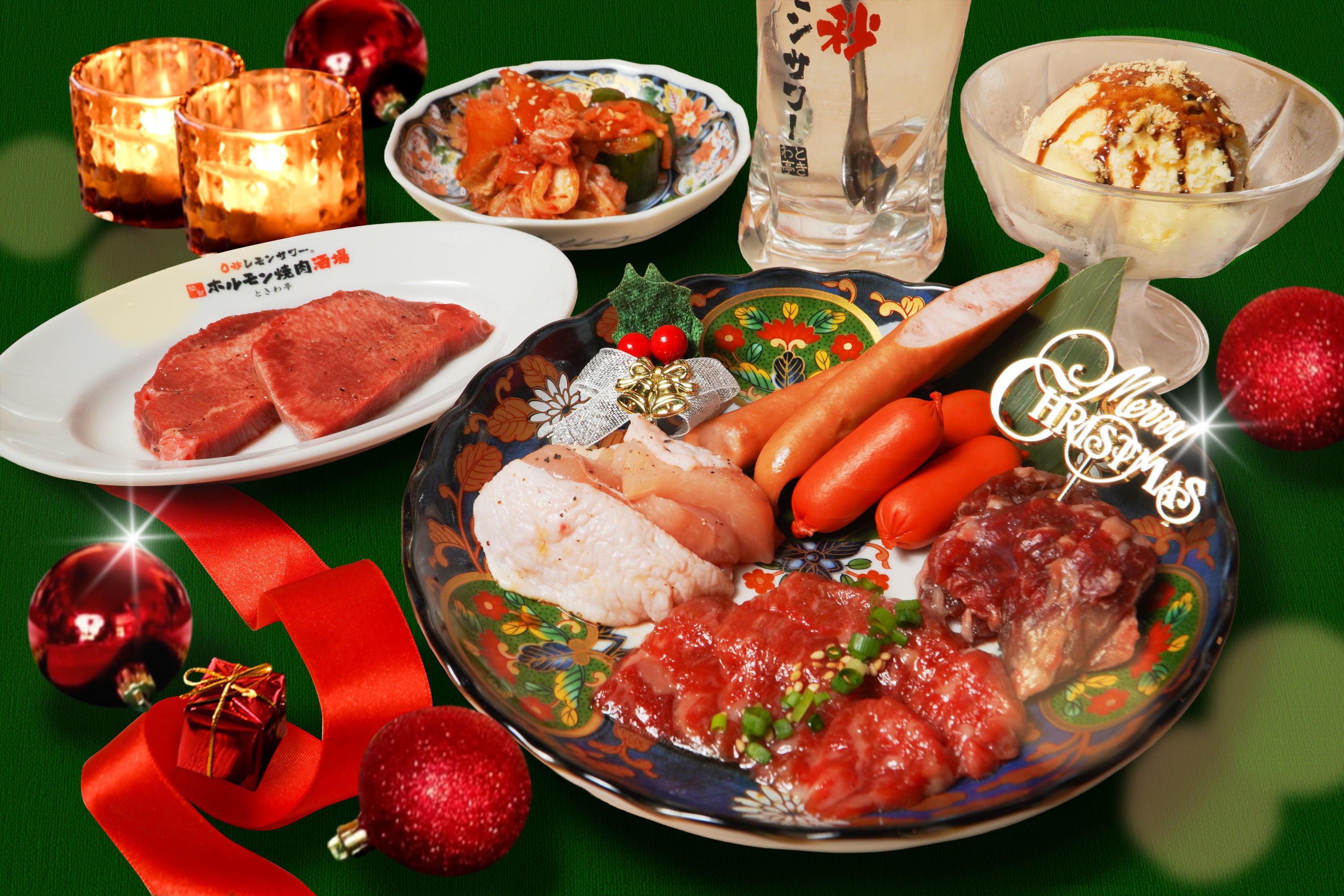 クリスマスを気兼ねなく楽しんでいただきたく、クリスマス限定『クリぼっちコース』を、12月23日(火)~12月25日(木)の3日間限定で提供いたします。ひとりでも贅沢に味わえるよう、特別メニュー「クリぼっち肉盛り合わせ」(上カルビ、牛ハラミ、鶏モモ、あらびきソーセージ、赤ウィンナー)をご用意しました。前菜からメイン、デザートまで、クリスマス気分をしっかり楽しめる充実の内容とお得な価格で、ゆったりとしたソロ時間をお過ごしいただけます。