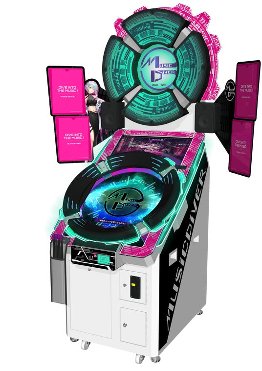 『MUSIC DIVER(ミュージック ダイバー)』は、楽器を演奏するようにスティックを使ってプレイするアミューズメント施設向けの音楽体感演奏ゲームです。付属のスティックを使って直感的なプレイが可能で、楽器を演奏しているような臨場感をお楽しみいただけます。EDMの他、ポップスやアニメソングに『MUSIC DIVER』オリジナル楽曲などをラインナップ。毎月楽曲の追加を予定しており、音ゲーファンの皆様に永くお楽しみいただけます。