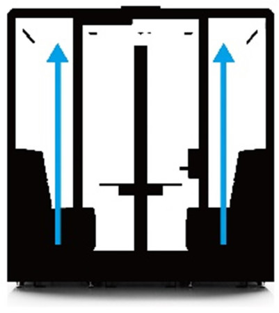 床面に設置したファンが室内に空気を供給し、自然排気によって外へ排出される機械給気方式を採用しました。人感センサーにより、ユーザーの操作不要で常に換気された状態で利用できます。計算上、約40秒毎に室内の空気が入れ替わります(※)。