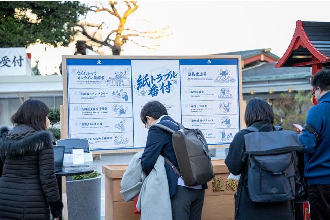 来場者は、アナログな紙書類に依存した業務で発生するトラブルをお祓いし来年のDX推進を祈願する「DXご祈祷」に参加し、兎年の2023年が「飛躍の年」となるよう願いました。