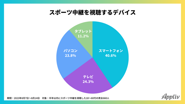 スポーツ中継を視聴するデバイス1位は「スマートフォン」、テレビの約1.7倍