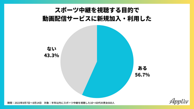 スポーツ中継を観るために動画サービスに新規加入・登録した人は56.7%