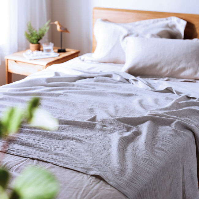 リネン(麻)は吸放湿性に優れ、さらっとした手触りで夏に最適な天然素材。リネンの中でも、特に肌ざわりがよく通気性の良いフレンチリネンを使うことで、汗を吸収しながらもべたつきにくく、ジメっとした夏の夜でも心地よくお過ごしいただけます。