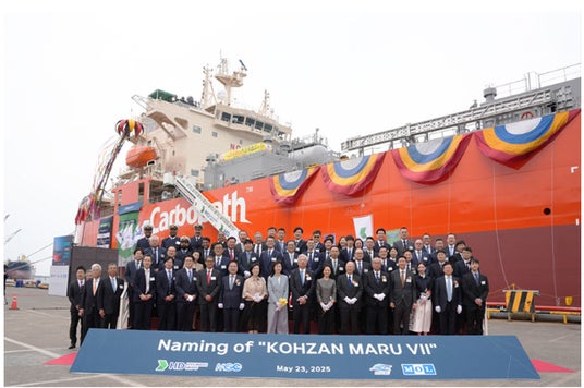 竣工に先立ち、5月23日に現代尾浦造船にて命名式が執り行われ、三菱ガス化学の藤井代表取締役会長により命名されました。今回竣工した第七甲山丸は、国内荷主が長期用船する国内初のメタノール二元燃料外航船です。商船三井と三菱ガス化学は1983年に日本初のメタノール専用船「甲山丸」の運用を開始し、効率的で安全性の高いメタノール海上輸送を担ってきました。第七甲山丸は初代「甲山丸」以来培ってきたメタノール海上輸送のノウハウを継承しながら、三菱ガス化学が取り扱う再生可能資源由来の環境循環型メタノールの海上輸送を行うと共に、次世代船舶燃料として注目されているメタノールを本船の燃料として活用し、真に持続可能なメタノールの運用を実現します。