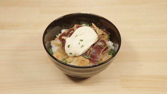 マグロといぶりがっこのマスカルポーネ丼