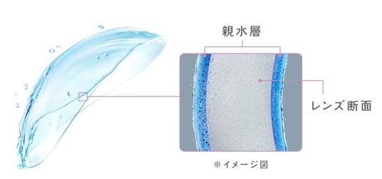 レンズ表面に保湿成分MPCポリマー※を配合し親水層を形成。レンズの表面がみずみずしく、うるおいが長時間持続します。