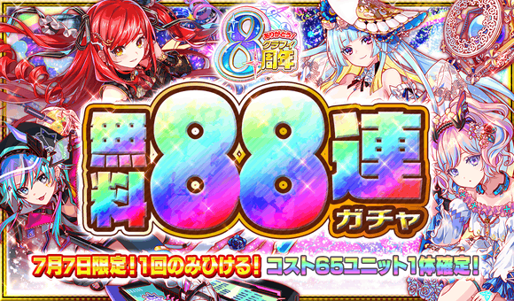 ■「7月7日」限定で「無料88連ガチャ」を開催!
