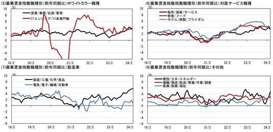 ・求人数指数の前年同期比は+10.7%と12月にプラスに転じて以降、ペースは鈍化しているものの上昇を続けている。