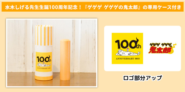 「ゲゲゲの鬼太郎 はんこコレクション」は、水木しげる先生生誕100周年記念ロゴと「ゲゲゲの鬼太郎」ロゴが入った専用ケース付きとなります。