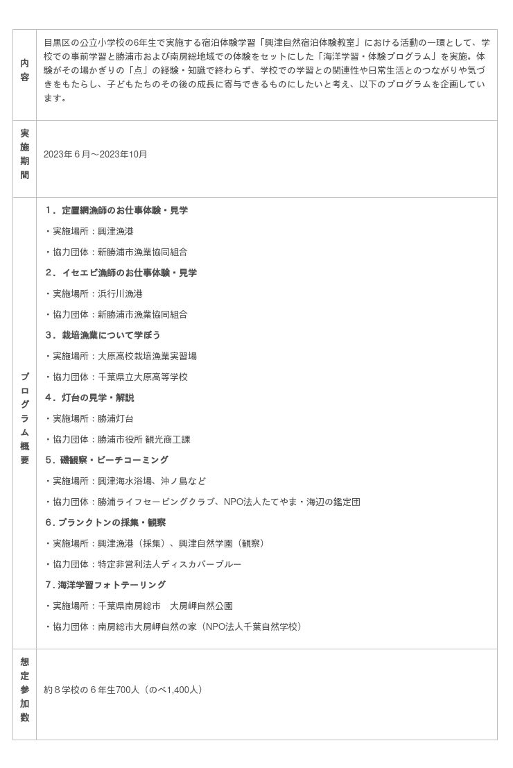 ■目黒区と連携した「海洋学習・体験プロジェクト」の実施概要