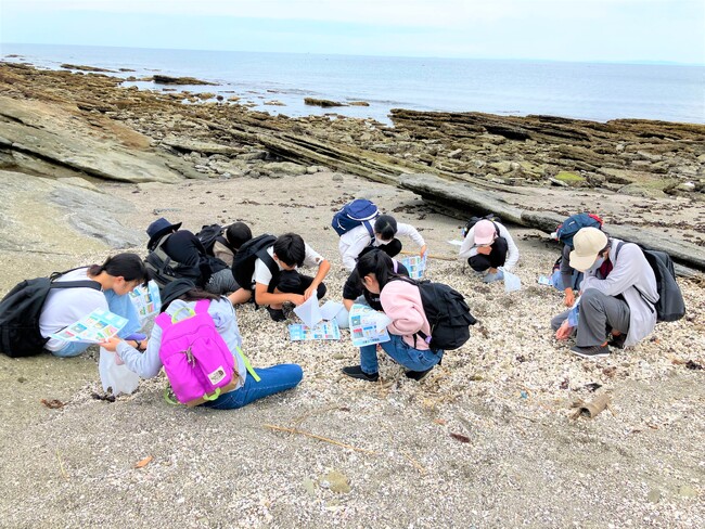 第一弾として、2023年6月8日(木)に目黒区立田道小学校の6年生の宿泊体験学習「興津自然宿泊体験教室」の中で、海辺の豊かな生態系を実感することができるプログラムを千葉県館山市沖ノ島で開催。子どもたちは無人島の生き物や磯などを観察、収集し、グループでミッションにも挑戦。海辺の生態系を知るとともに、海洋ごみ問題など海の課題も実感することで、私たち人間も生態系を担っている一部であることを知り、子どもたちが海を身近に感じる体験となりました。
