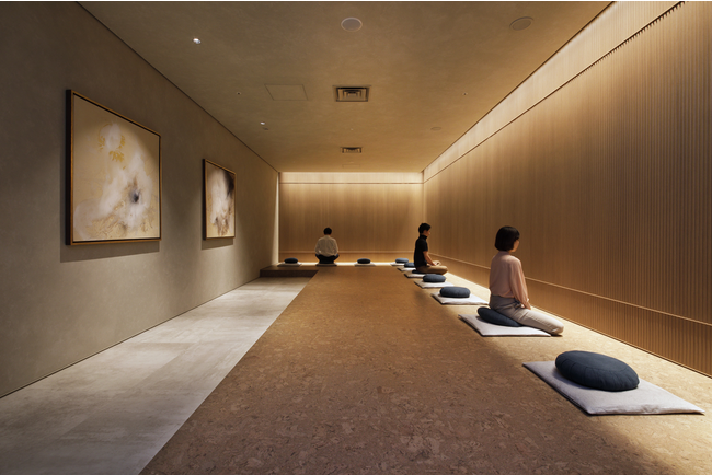 水質・空気質・環境音質などの物理的な対策に加え、マインドフィットネスルームを設けるなど、社員の心身の健康に対し高いアプローチを図った設計となっています。