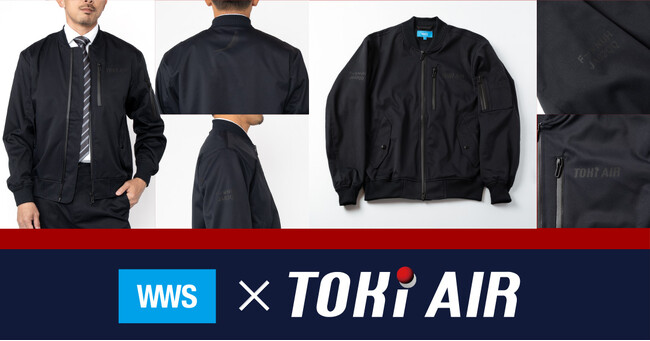 作業着スーツ発祥のボーダレスウェアブランド「WWS/ダブリューダブリューエス」(以下、WWS)を企画・販売する 株式会社オアシスライフスタイルグループ(所在地:東京都港区、代表取締役:関谷有三)は、2023年8月より就航を開始する航空会社トキエア株式会社(所在地:新潟県中央区、代表取締役:長谷川政樹)とのコラボ第2弾として、2023年6月30日(金)10:00よりトキエアのロゴや機体番号をデザインした「WWS×TOKI AIR JA02QQ洗えるライトMA-1」を発売します。