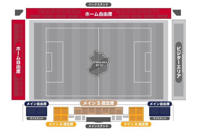 2.バックスタンドと北サイドスタンド(ホームゴール裏)を「ホーム自由席」とし、バックスタンド側にミックスエリアは設けない運用といたします。
