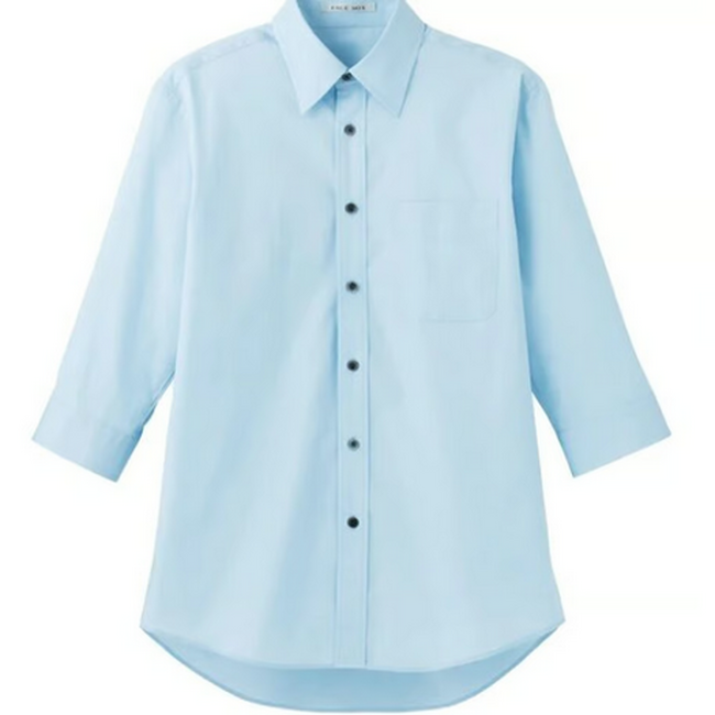 〇ブロードレギュラーカラー七分袖シャツ