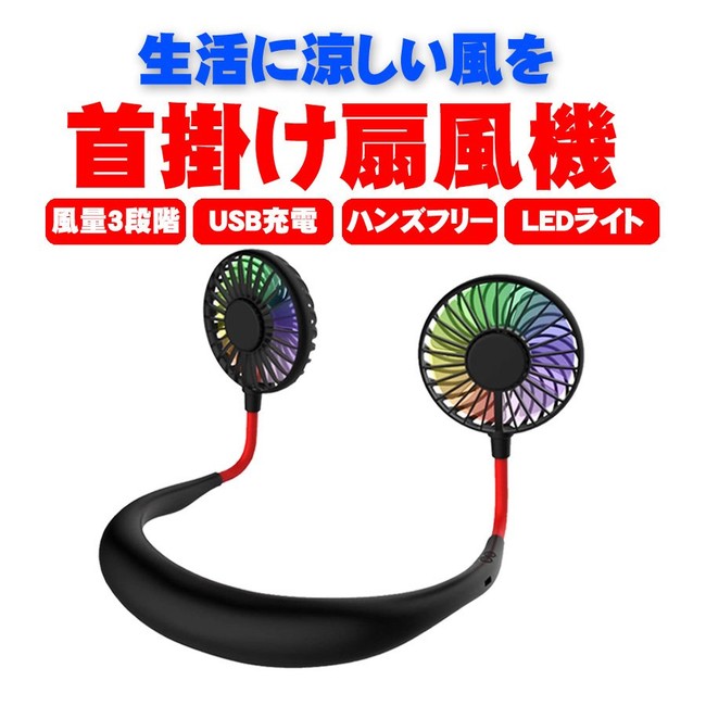 夏のマストアイテム!首掛け扇風機 USB充電式 3段階風力調節 360°角度調整 ハンズフリー