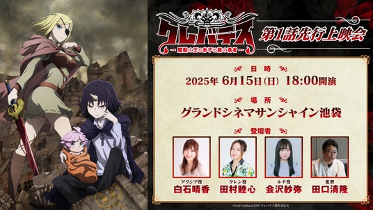 6月15日(日)には、池袋グランドシネマサンシャインにて第1幕先行上映会の開催も決定しています。上映後には、アリシア役・白石晴香さん、クレン役・田村睦心さん、ルナ役・会沢紗弥さん、田口清隆監督が登壇するトークショーも開催。1時間拡大放送となる第1話を世界最速でご覧いただける機会を、どうぞお見逃しなく。