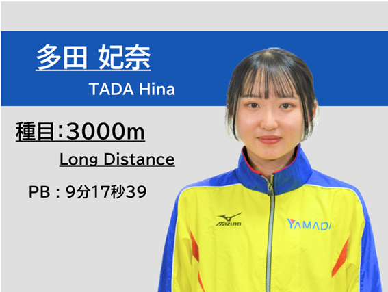 また、同日開催される「第39 回U20 日本陸上競技選手権大会」に多田妃奈選手(3000m)、田中那奈選手(800m)が出場いたします。
