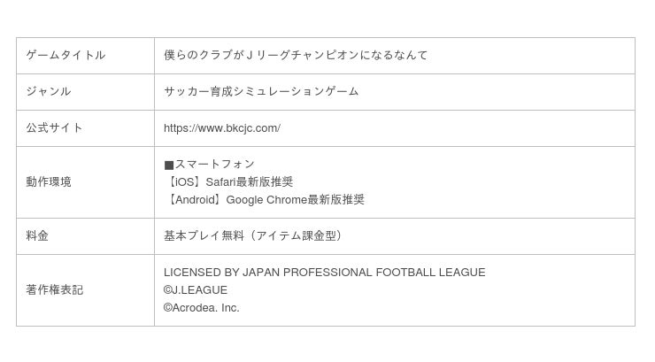 株式会社アクロディア(本社:東京都新宿区、代表取締役社長:篠原 洋)は、株式会社ヤマダデンキが運営する「ヤマダゲーム(URL: http://gpf.mymd.jp/)」において、Jリーグオフィシャルライセンスソーシャルゲーム「僕らのクラブがJリーグチャンピオンになるなんて」の事前登録を開始致しました。