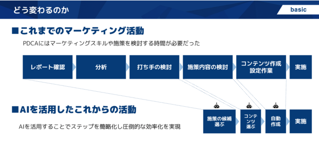 株式会社ベーシック(本社:東京都千代田区、代表取締役:秋山勝)は、BtoBマーケティングのお困りごとをまるっと解決するサービス『ferret One』において、OpenAI社が提供する『ChatGPT』を活用し、知識・スキルが求められるマーケティング活動の打ち手の検討から施策実行までのプロセスを、AIが代行する機能の提供を開始することをお知らせいたします。まずは第一弾として、2023年4月に「コンテンツ支援機能」をリリースいたします。