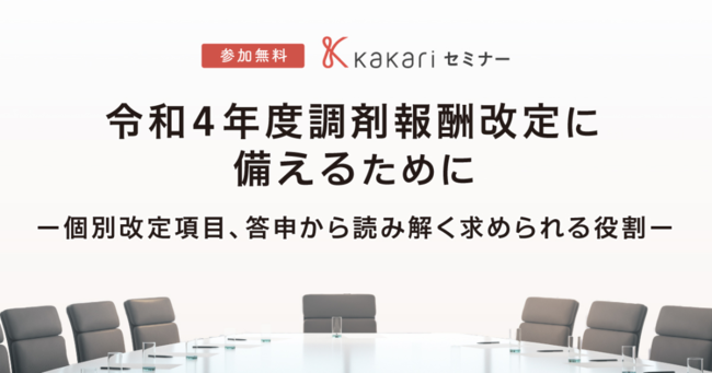 これまで、kakariは「令和4年度調剤報酬改定に備えるために」と題して、調剤報酬改定に関するセミナーを定期的に実施しており、今月開催した2回のセミナーでは累計1,000人以上の方が参加されるなど好評をいただいておりますが、この度の答申の内容を踏まえ、これまでのセミナーをさらに深化させ、5日連続で開催することにいたしました。