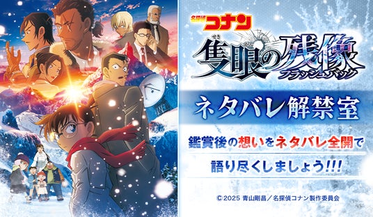 and factory株式会社(本社:東京都目黒区、代表取締役社長:青木倫治、以下and factory)と、株式会社 小学館(本社:東京都千代田区、代表取締役社長:相賀信宏、以下小学館)が共同運営するマンガアプリ「サンデーうぇぶり」では、劇場版『名探偵コナン 隻眼の残像』の公開を記念し、サンデーうぇぶりアプリ限定で“ネタバレ解禁室”がオープンしました。映画の印象的な場面カットとともに、ネタバレOKなファン同士の熱い語り合いが楽しめる期間限定コンテンツです。