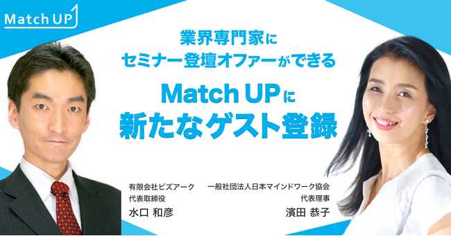 株式会社イノベーション(東証グロース 証券コード3970)のグループ会社である、株式会社Innovation X Solutions(本社:東京都渋谷区、代表取締役社長:遠藤俊一、以下「Innovation X Solutions」)は、業界専門家に企業が主催するセミナー/イベントへの登壇オファーができるマッチングサイト「Match UP」に、一般社団法人日本マインドワーク協会代表理事濱田恭子氏、有限会社ビズアーク代表取締役水口和彦氏など、豪華専門家が新たにゲスト登録されたことをお知らせします。