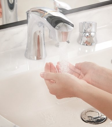 手を触れずに差し出すだけでセンサーが感知し、自動で水を吐水します。タッチレスなので、ハンドルを汚さずに手を洗うことができます。自動吐水と手動吐水の切り替え操作が不要で、手洗い、歯磨き、洗面などちょっと水を出したい時は自動で、コップやバケツの水くみなど、ずっと水を出したい時はハンドル操作で連続吐水が可能です。