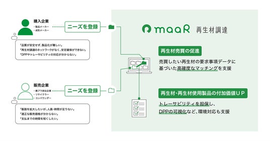 「Maar 再生材調達」を通じて、高品質な再生材を求める幅広いメーカーへのアクセスが可能となり、新規顧客獲得の機会が拡大します。「プレミアム再生材 品質保証グレード」として、品質に見合った適正価格での販売が期待できます。